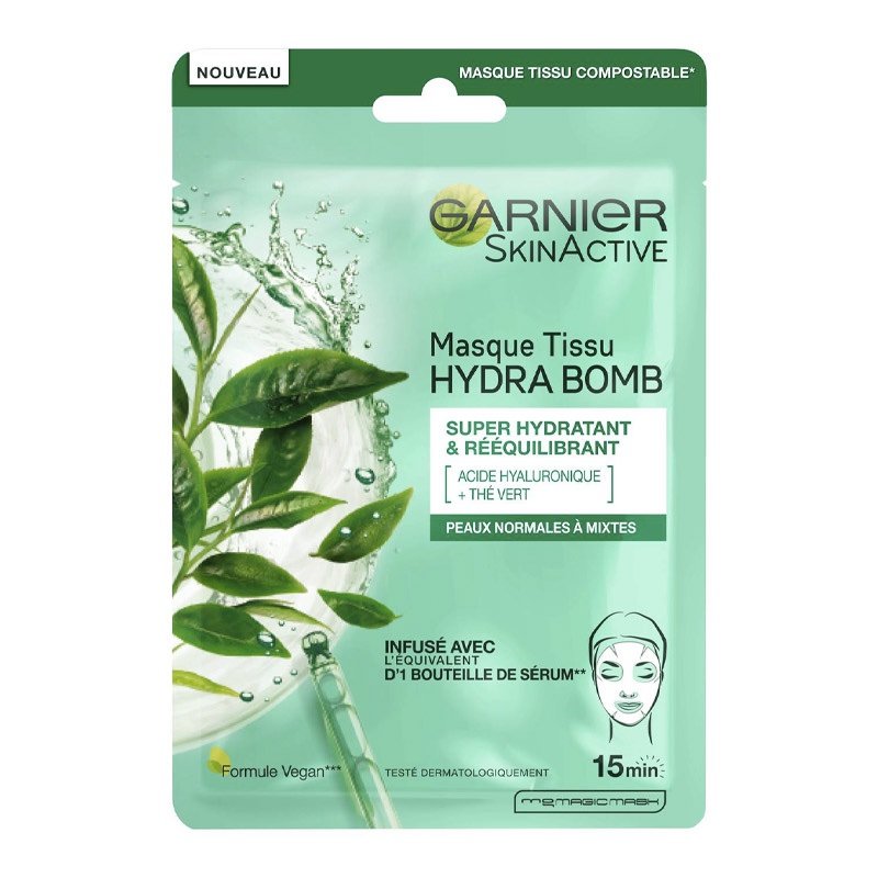 GARNIER SkinActive Moisture Bomb Masque en Tissu Thé Vert Super Hydratant Rééquilibrant