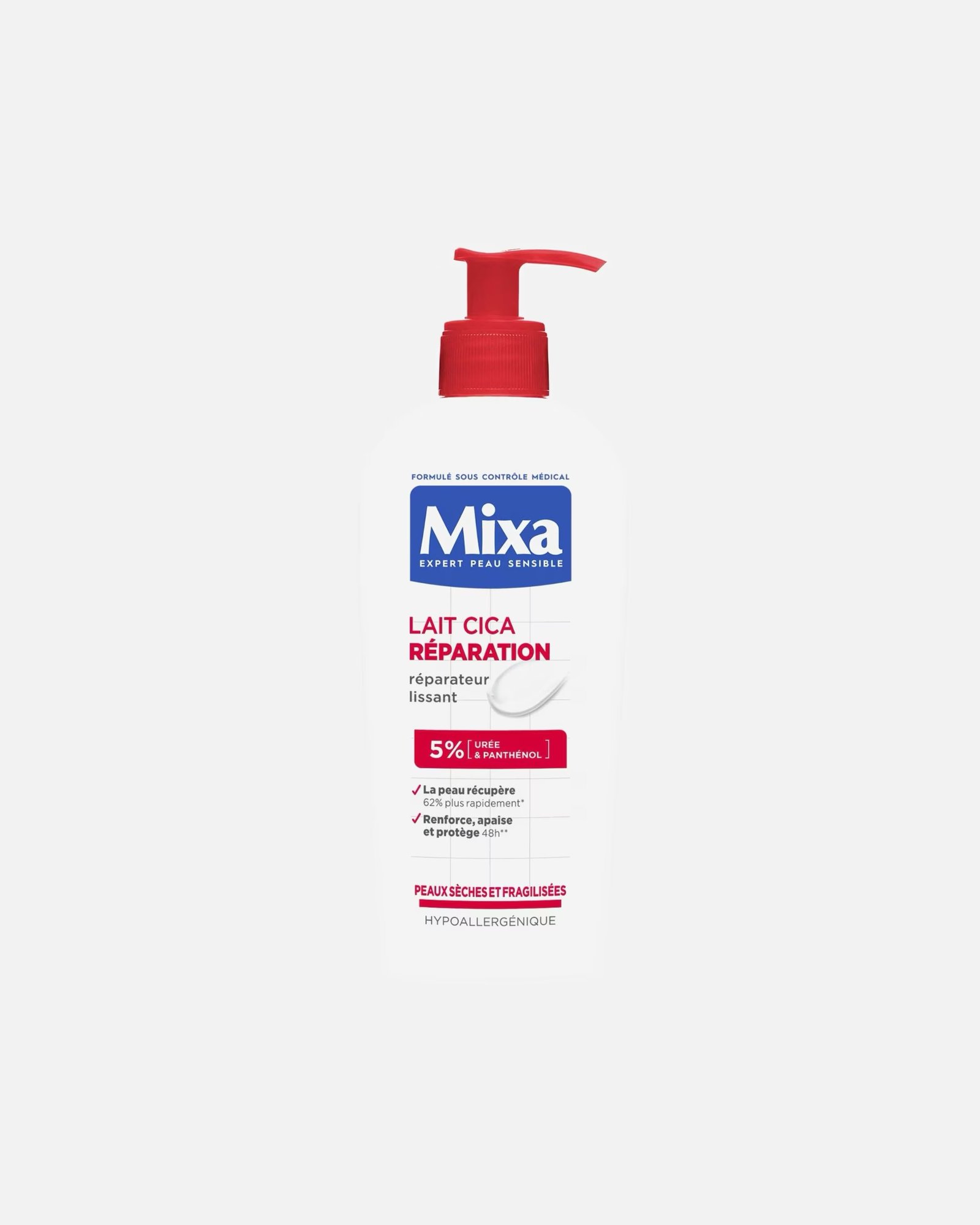Découvrez Mixa Corps Lait Cica-Repair, formulé avec 2 actifs puissants de la pharmacie: du panthénol aux propriétés réparatrices et de l’urée aux vertus hydratantes et lissantes.